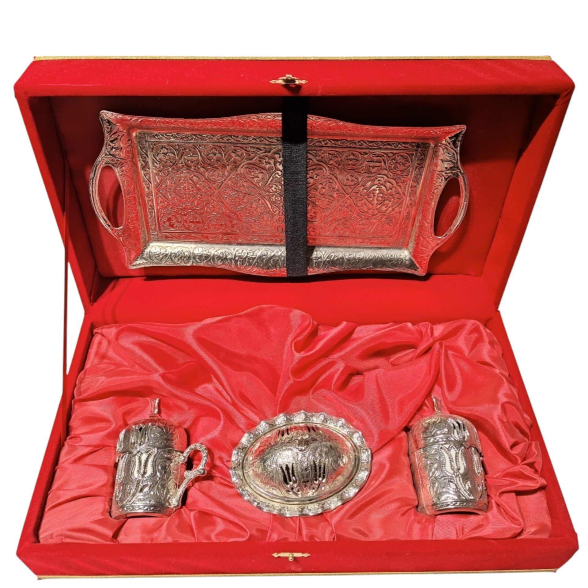 Gümüş tepsili 2'li kahve fincan takımı gümüş set