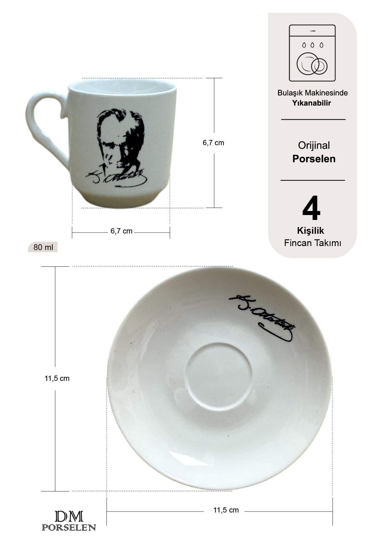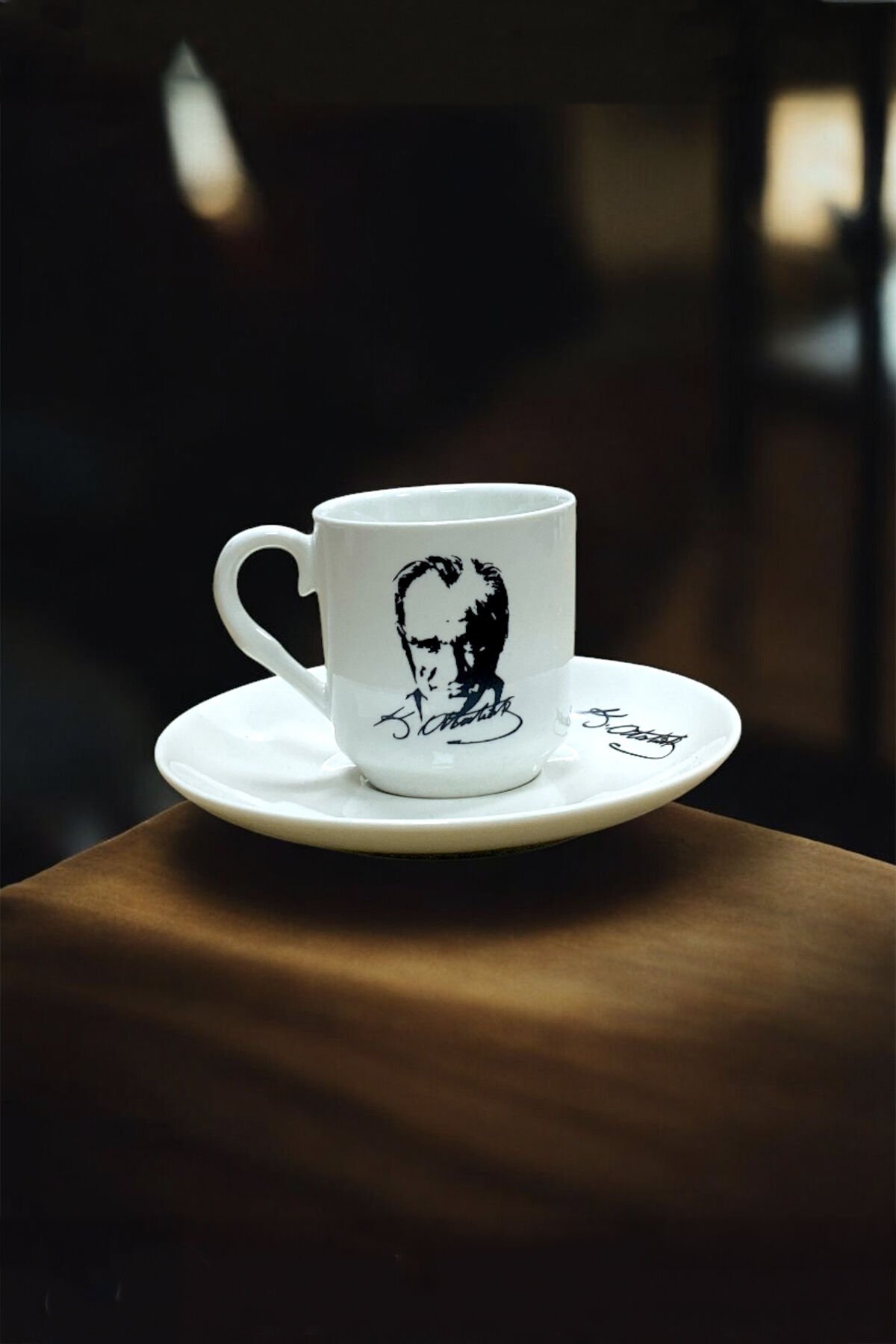 Üzerindeki Atatürk silüeti ve imzası, fincana sade ama etkileyici bir karakter kazandırır.