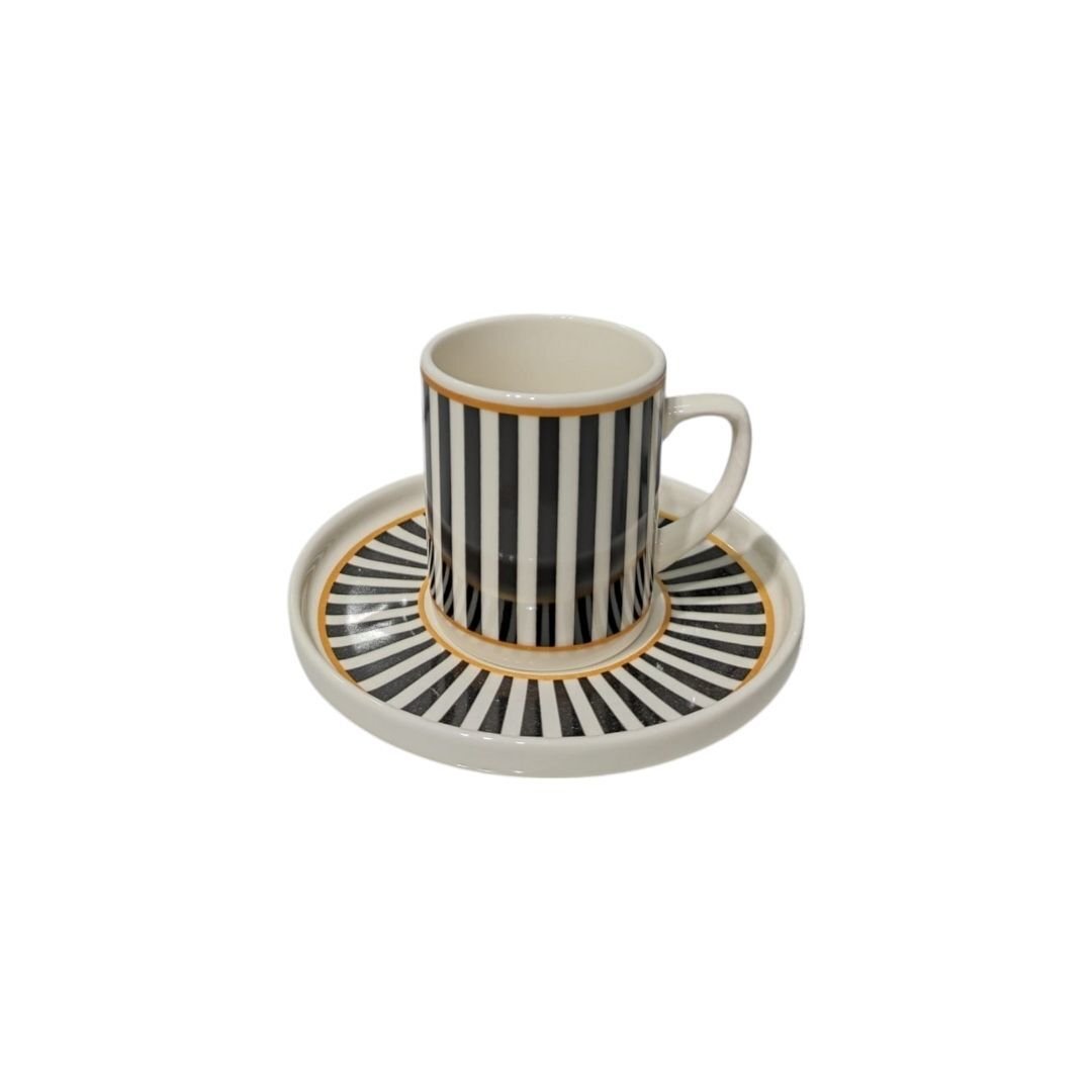DM Porselen’in sade ve sofistike çizgisini taşıyan bu özel koleksiyon, geometrik motiflerle bezeli fincan ve tabak tasarımlarını bir araya getiriyor. Siyah-beyazın dengeli uyumu, her parçada çağdaş bir estetik sunarken, simetrik desenler geçmişten bugüne uzanan bir zarafeti temsil ediyor.