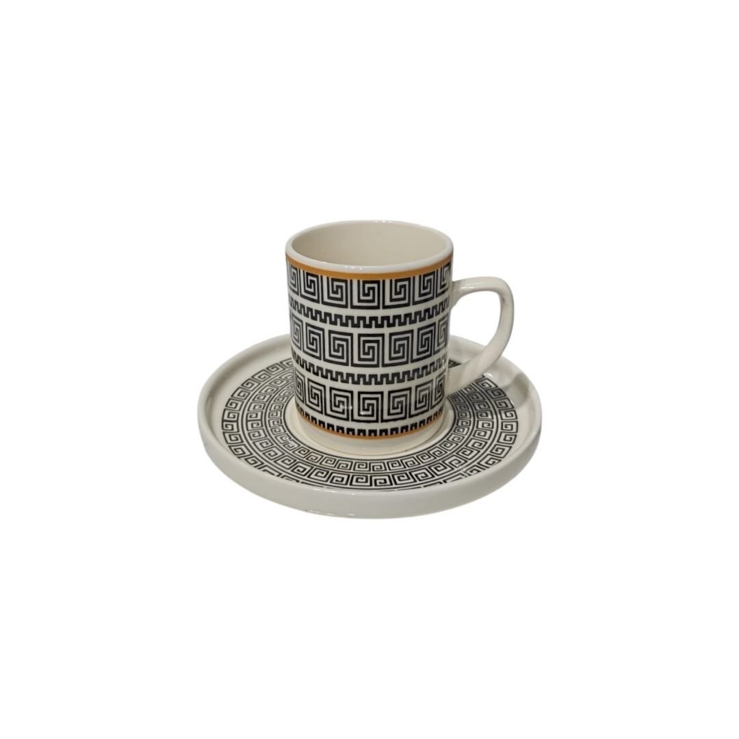 DM Porselen’in sade ve sofistike çizgisini taşıyan bu özel koleksiyon, geometrik motiflerle bezeli fincan ve tabak tasarımlarını bir araya getiriyor. Siyah-beyazın dengeli uyumu, her parçada çağdaş bir estetik sunarken, simetrik desenler geçmişten bugüne uzanan bir zarafeti temsil ediyor.