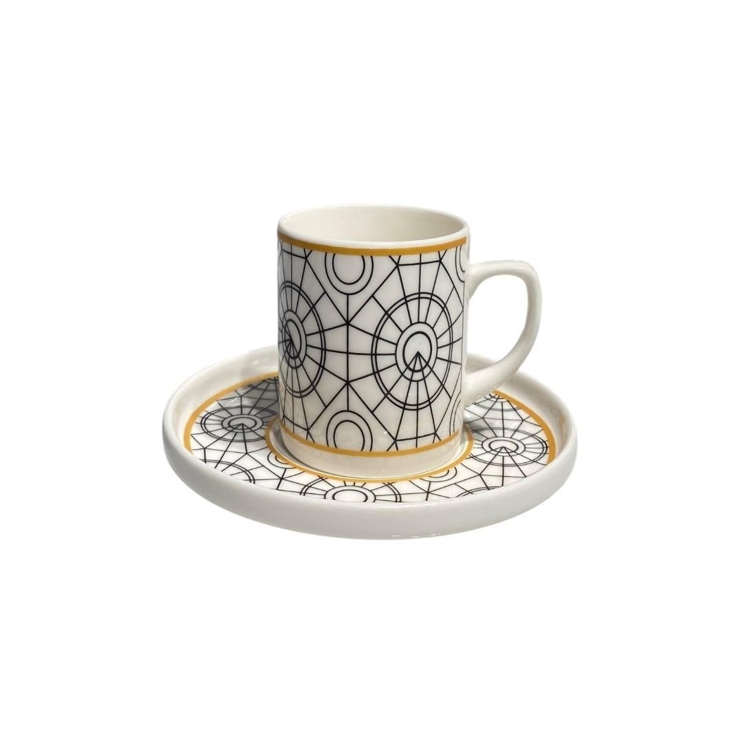 DM Porselen’in sade ve sofistike çizgisini taşıyan bu özel koleksiyon, geometrik motiflerle bezeli fincan ve tabak tasarımlarını bir araya getiriyor. Siyah-beyazın dengeli uyumu, her parçada çağdaş bir estetik sunarken, simetrik desenler geçmişten bugüne uzanan bir zarafeti temsil ediyor.