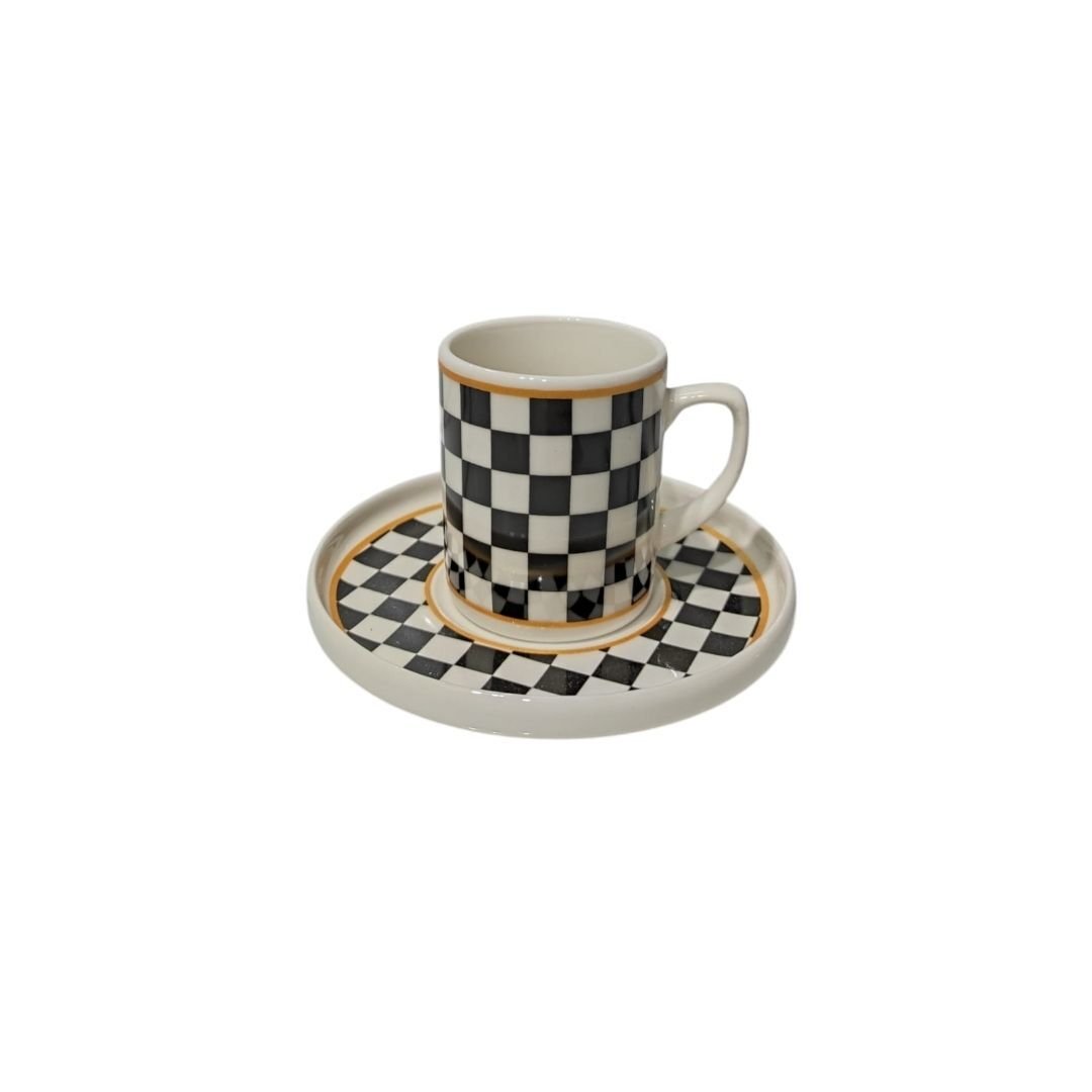 DM Porselen’in sade ve sofistike çizgisini taşıyan bu özel koleksiyon, geometrik motiflerle bezeli fincan ve tabak tasarımlarını bir araya getiriyor. Siyah-beyazın dengeli uyumu, her parçada çağdaş bir estetik sunarken, simetrik desenler geçmişten bugüne uzanan bir zarafeti temsil ediyor.