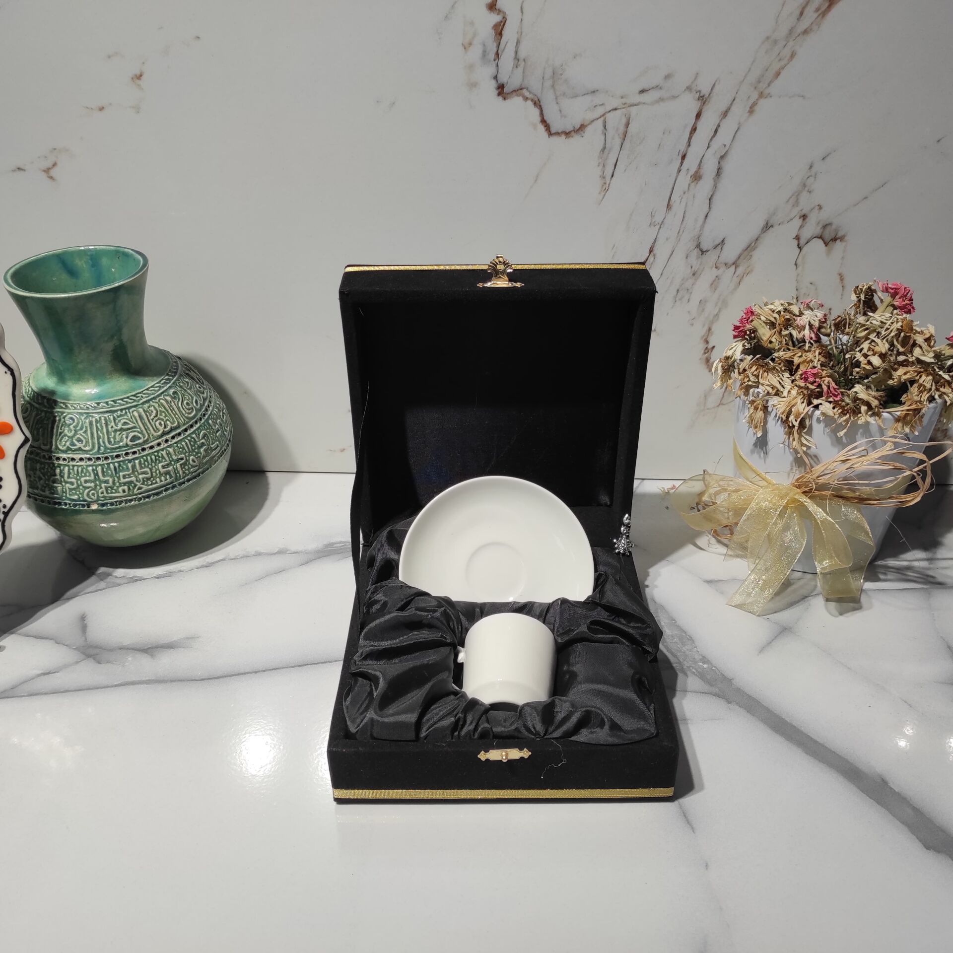 Nev-i Safa Porselen Fincan Takımı Zarafetin ve sade şıklığın buluştuğu Nev-i Safa Porselen Fincan Takımı, her yudumu özel kılmak için tasarlandı. İnce beyaz porseleni, ergonomik tutuş sağlayan sapı ve zarif tabağıyla kahve ve çay keyfinizi bir üst seviyeye taşıyor. Bu takım, kaliteli porselen malzemesi sayesinde uzun ömürlü kullanım sunarken, minimalist tasarımıyla her türlü masa düzenine uyum sağlar. Günlük kullanımda veya özel davetlerde fark yaratmak isteyenler için mükemmel bir seçim! Kadife kutularımızda 4 adet renk seçeneği mevcuttur.(Kırmızı-Lacivert-Bordo-Kırmızı) |