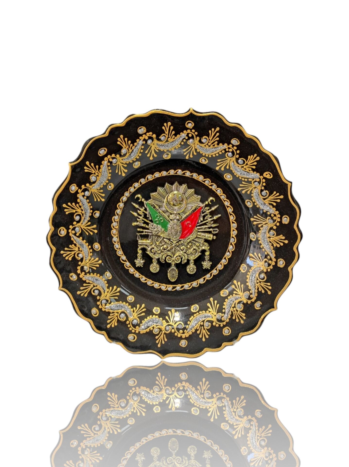 Osmanlı Armalı Tabak:Şanlı Osmanlı İmparatorluğu'nun ihtişamlı arması, tabağın merkezinde altın yaldızlar ve dikkat çekici renklerle hayat buluyor. Tarihe meraklı olanlar veya evine otantik bir hava katmak isteyenler için mükemmel bir seçim. Her bir detayıyla Osmanlı ruhunu yansıtan bu eser, geçmişin izlerini bugüne taşıyor.
